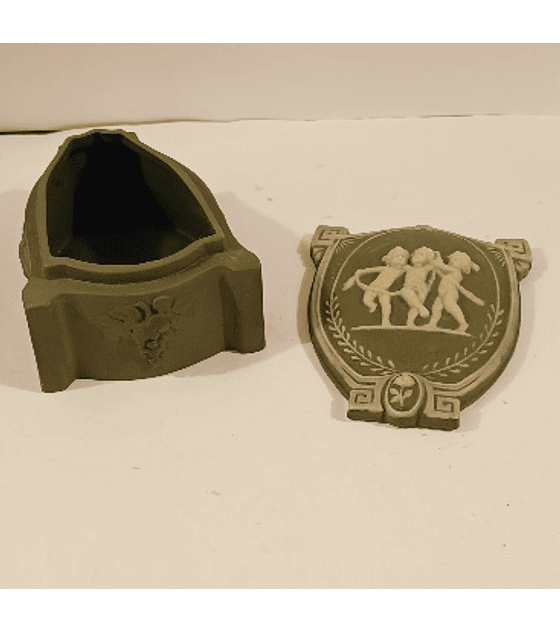 Caixa guarda joias porcelana alemã, em cor verde, desenhos em alto relevos,verde e branco